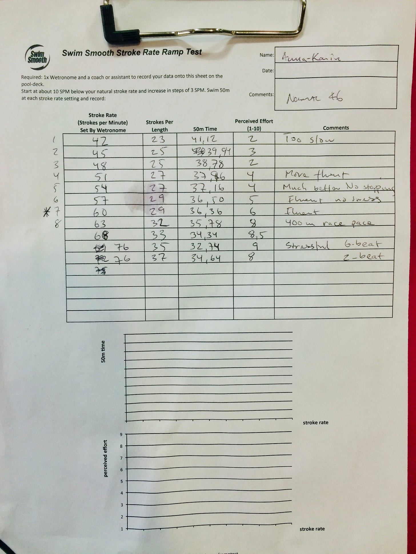Through one of our stroke rate ramp tests, we quickly discovered that her natural rhythm was much higher:
