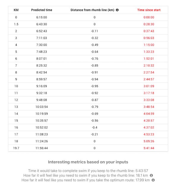 And it overlays weather and current predictions to generate the optimal GPS trace and predicted finish time.