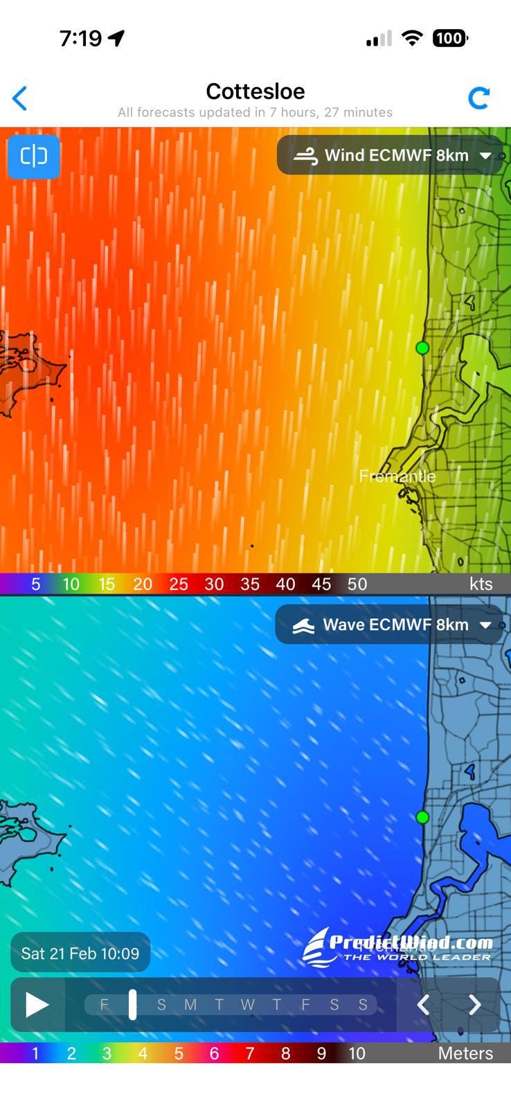 I’ve got a weather heatmap here showing how the forecast deteriorated the closer swimmers would have got to Rottnest. The further west you went, the more it ramped up. Not marginal. Not “a bit lumpy.” Properly building.